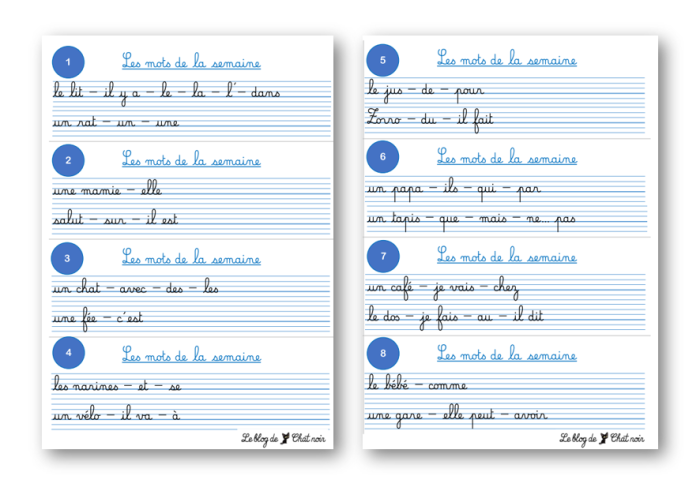 Cette année, je proposerai la liste des mots de la semaine : il s’agit des mots repères de chaque graphème et des mots outils à mémoriser à chaque leçon. Ces mots ne seront pas à apprendre le soir car nous les apprendrons en classe.
